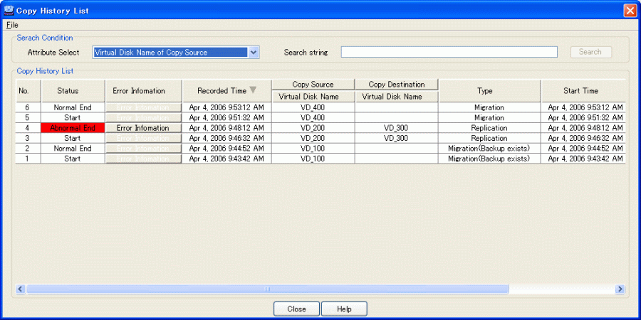 Copy Destination | Virtual Disk Name | Name of the copy destination virtual disk | |