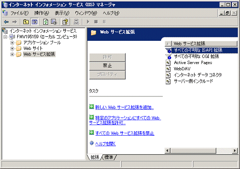 ツリービューで、[PC名]-[Webサービス拡張]を選択します。