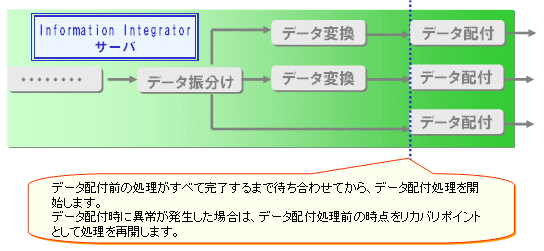 これにより、いずれかのデータ配付処理で異常が発生した場合、異常が発生した処理の直前のリカバリポイント(データ配付前の時点)からリカバリを行うことができます。