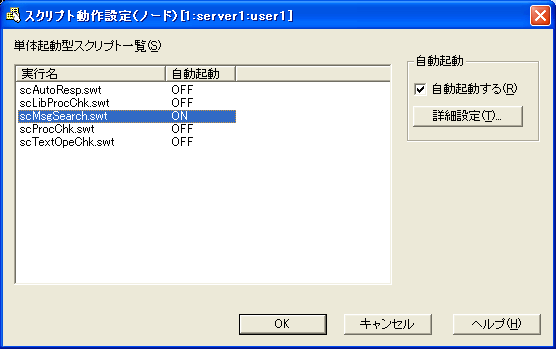 自動起動の詳細な設定をする場合は、[詳細設定]ボタンをクリックし、[スクリプト自動起動設定]ダイアログボックスを起動します。