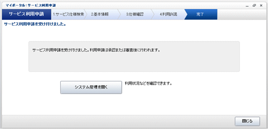 [閉じる]ボタンをクリックして、[サービス利用申請]ページに戻ります。