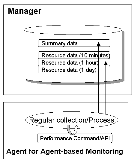 Agents for Agent-based Monitoring collect performance information by periodically issuing commands or APIs provided by the operating system or middleware.