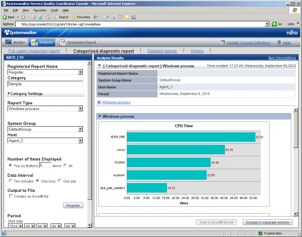 Categorized diagnostic analysis/report | This analysis and report is used for primary fault isolation of bottlenecks within servers where problems have occurred. |