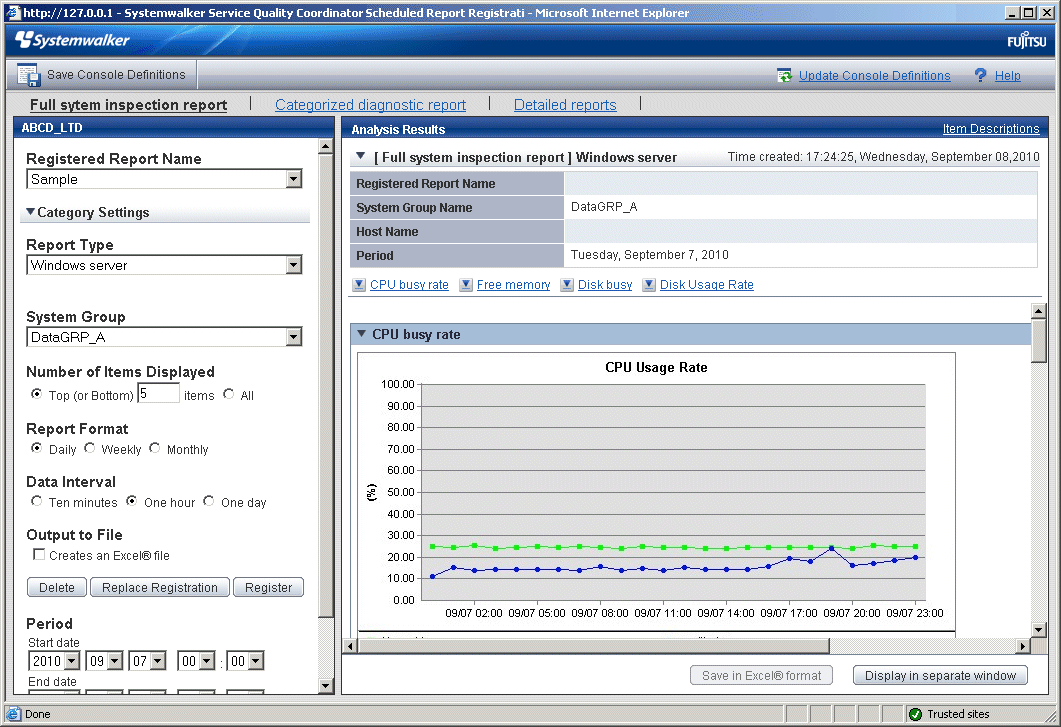 Unlike the Analysis function, which outputs reports to the screen as needed, the Scheduled Report function automatically outputs daily, weekly and monthly reports by setting up report criteria in advance and registering these with the scheduler.