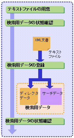 この検索用データは、XML文書を格納しているテキストファイルを入力として登録します。