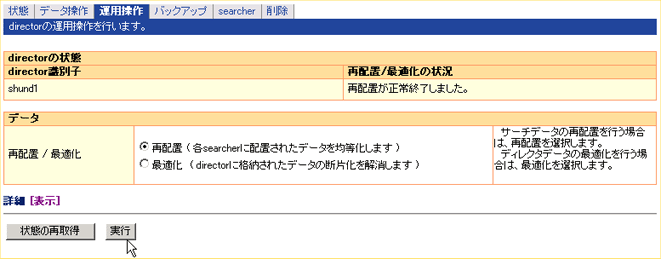 ラジオボタン「再配置」を選択後、「実行」ボタンをクリックし、データの再配置を行います。