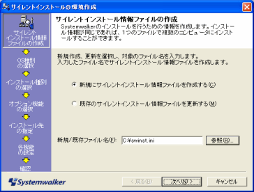 サイレントインストール情報ファイルはswinst.iniと固定で作成します。詳細は、“サイレントインストール”の“インストール情報ファイルの作成”を参照してください。