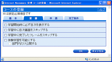 - [Internet Navigware管理ツール]において、[コース管理]−[コース]タブをポイントします。