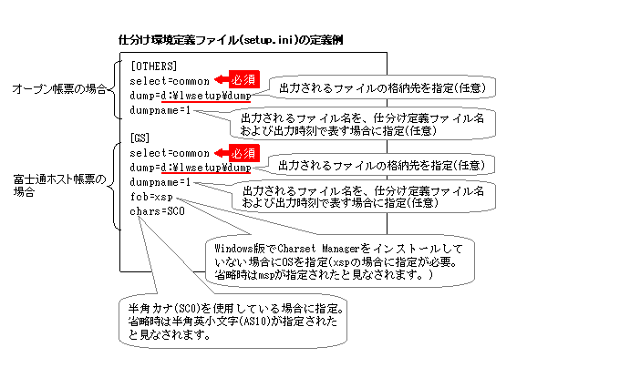ダンプ出力機能用に、仕分け定義ファイルの作成を行います。
