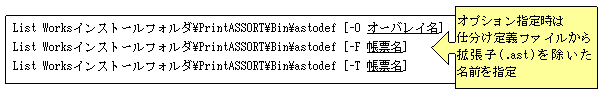 List Worksインストールフォルダ\PrintASSORT\Bin\astodef -O ABCD