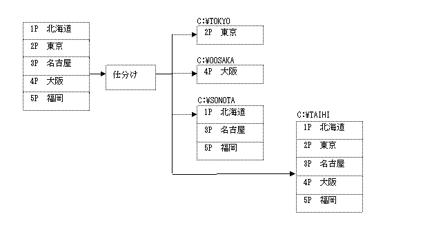 SM,1,0, * *個別情報1 *文字列が「東京」であるページを東京用フォルダへ格納 SC,LISTVIEW, KF,DB-PATH,C:\TOKYO, CM,*,lwprt,1, CC,STRL,東京,5,, * *個別情報2 *文字列が「大阪」であるページを大阪用フォルダへ格納 SC,LISTVIEW, KF,DB-PATH,C:\OOSAKA, CM,*,lwprt,1, CC,STRL,大阪,5,, * *個別情報3 *文字列が「東京」「大阪」以外であるページをその他用フォルダへ格納 SC,LISTVIEW, KF,DB-PATH,C:\SONOTA, CM,*,lwprt,1, CC,ELSE,, * *個別情報4 *すべてのページを待避用フォルダへ格納 SC,LISTVIEW, KF,DB-PATH,C:\TAIHI, CM,*,lwprt,0,