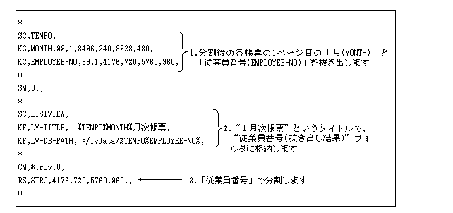 全体帳票を従業員番号ごとに分割します。