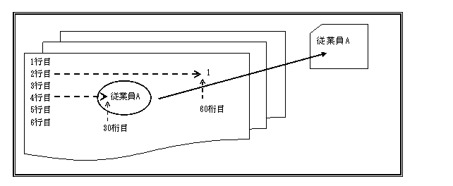月 :2行目の60桁目~62桁目 従業員番号:4行目の30桁目~40桁目