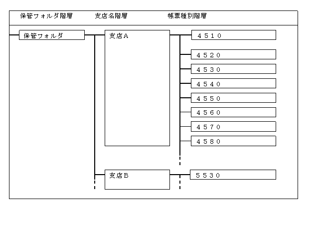 帳票を格納する保管フォルダ名として、「支店名」と「帳票種別」を使用します。
