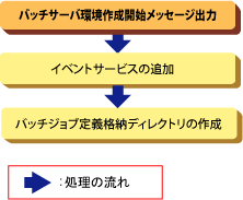 ただし、バッチジョブ定義格納ディレクトリが作成済の場合には、メッセージを標準出力に表示し、次の処理に遷移します。