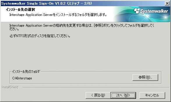 Interstage Application Serverのインストール先を選択します。