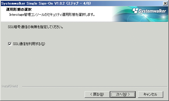 =========================================================================== Systemwalker シングル・サインオンサーバ セットアップ V1.0.2 All Rights Reserved, Copyright(c) FUJITSU LIMITED 1995 - 2011 =========================================================================== << セキュリティ運用形態の指定 >> SSL通信 : 利用する ---------------------------------------------------------------------------- セキュリティ運用形態を指定してください。 SSL通信(初期値: 利用する) [?,q,0:利用しない,1:利用する] ==> 0