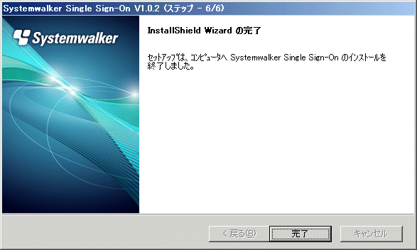 =========================================================================== Systemwalker シングル・サインオンサーバ セットアップ V1.0.2 All Rights Reserved, Copyright(c) FUJITSU LIMITED 1995 - 2011 =========================================================================== インストールは成功しました。 このプログラムを使用するには、システムを再起動した後に本製品の環境を構築 する必要があります。