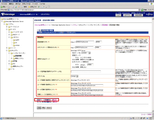 18. [認証基盤の情報]の[リポジトリサーバのURL]を設定します。