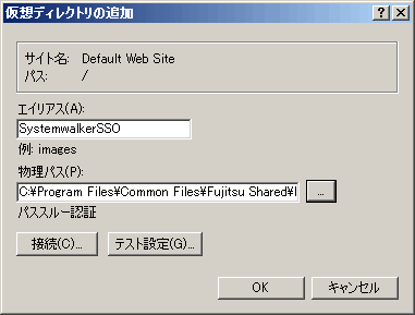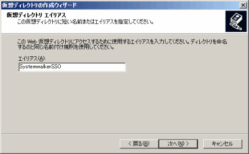仮想ディレクトリ エイリアスに“SystemwalkerSSO”を設定します。
