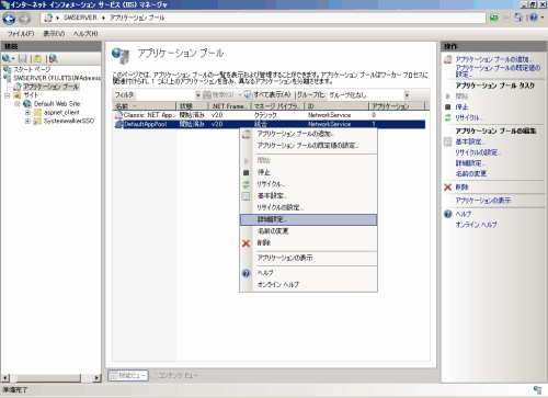 使用するアプリケーション プールを選択した状態で右クリックし、[詳細設定]を選択します。