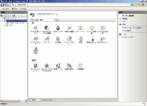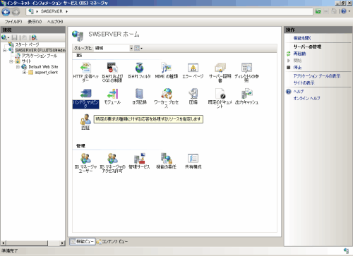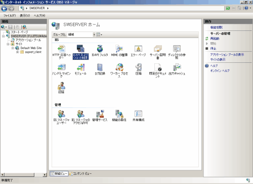 [スタート]メニューで[管理ツール]-[インターネット インフォメーション サービス(IIS)マネージャ]を選択します。