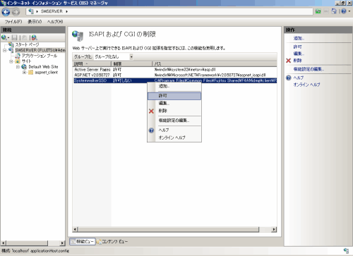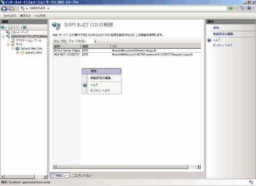 [ISAPIおよびCGIの制限]を追加します。[ISAPIおよびCGIの制限]画面の一覧を右クリックし、[追加]を選択します。