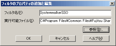 フィルタ名を入力し、実行可能ファイルにSystemwalkerシングル・サインオンエージェントのプログラムを絶対パスで設定します。