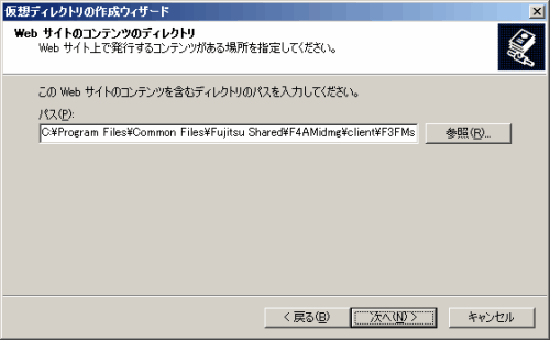 仮想ディレクトリの作成ウィザード画面を終了します。