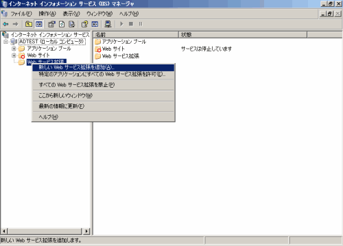 Webサービス拡張を選択し、[新しいWebサービス拡張を追加]を選択します。