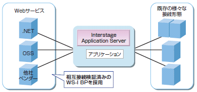 Webサービスの相互接続規約WS-I BPに対応し、SOA適用システムの基盤としてサービスの構築・運用・連携を支援します。他社ベンダーを含む他の業務サービスや.NET環境とも容易に接続でき、業務の適応範囲を拡大できます。環境設定やアプリケーション配備など簡単な運用操作で利用でき、実用的で使いやすいWebサービスを実現できます。