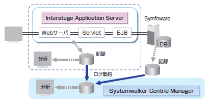 情報の漏洩に備えて「いつ」「誰が」「どのデータを」「どの経路で」アクセスしたかを記録できます。横通しの識別IDによる各ログの相関関係の簡易な分析や、Webサーバのアクセス情報(Symfowareの監査ログにWebサーバのIPアドレス・認証ユーザー名などを記録)による不審者の早期特定など、スピーディーな追跡調査や業務運用の正当性の証明に利用できます。