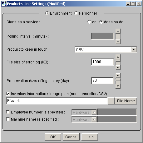 This commands calls the [Other Products Linkage - Environment Setup] dialog box. Use this command to select other products, to set interactive operations, and to set the user ID and the PC name