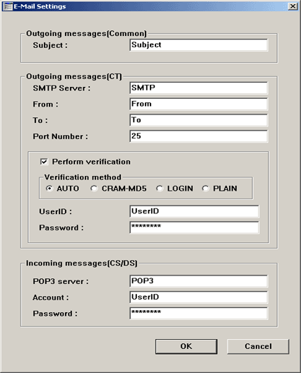 To send Inventory information by e-mail to CS/DS, it is required to set the e-mail environment in CS. In addition, when receiving e-mail in DS, it is required to set the e-mail reception environment in the [E-mail Environment Setup] dialog box.