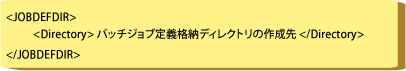 バッチジョブ定義格納ディレクトリの情報の記述形式については、“Interstage Job Workload Server リファレンス”の“バッチセットアップ情報ファイル”の“JOBDEFDIR要素”を参照してください。
