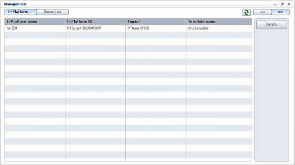 Click the Management button on the top left hand side of the page and then click the button () on the top right hand side of the page to display a list of information on the L-Platforms.