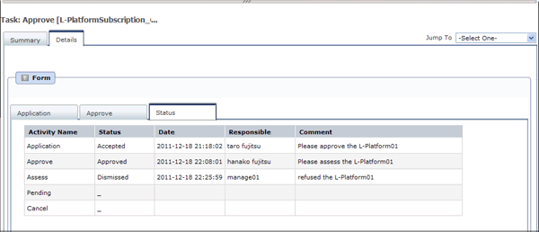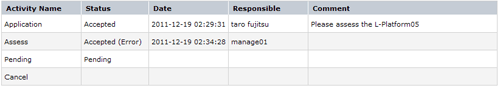 Comment | Displays any comments that were input at the time of Application, Approve, Assess or Pending. |