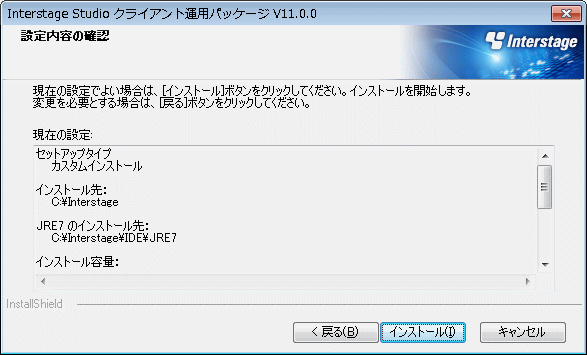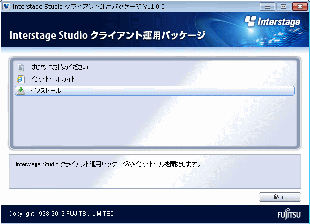 Interstage Studio クライアント運用パッケージのインストールを開始します。 |