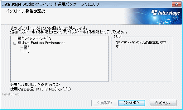 [インストール機能の選択]画面には、現在インストールされている機能(コンポーネント)がチェックされた状態で表示されます。