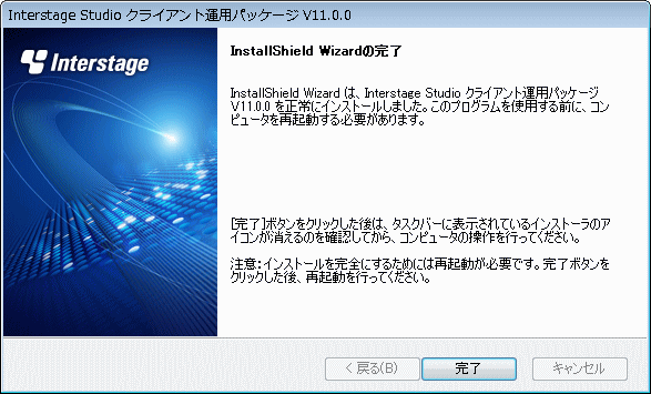 Interstage Studio クライアント運用パッケージのインストールを終了します。 |