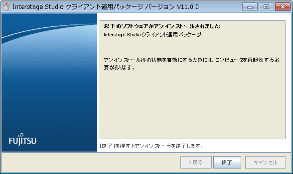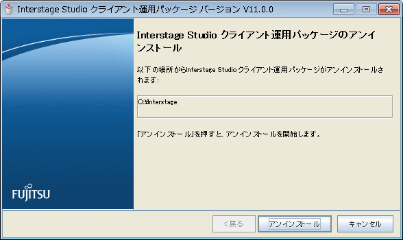 [アンインストール]をクリックするとInterstage Studio クライアント運用パッケージのアンインストールが開始されます。