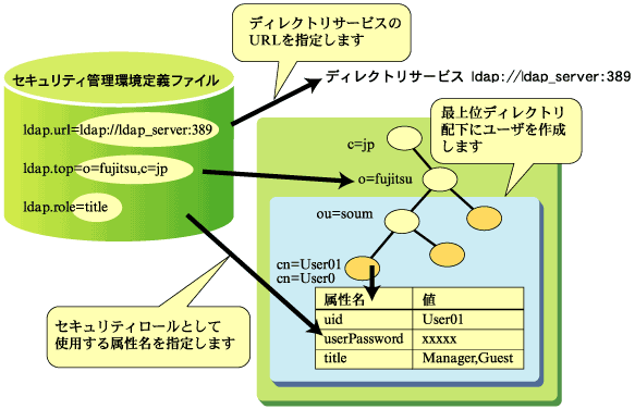 セキュリティ管理環境定義ファイルとディレクトリサービスとの関連