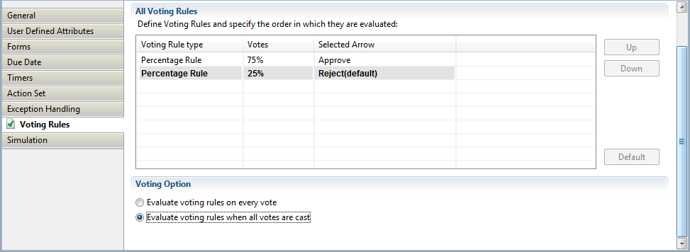 You can rearrange the order in which the voting rules are evaluated by highlighting a rule and clicking Up or Down.