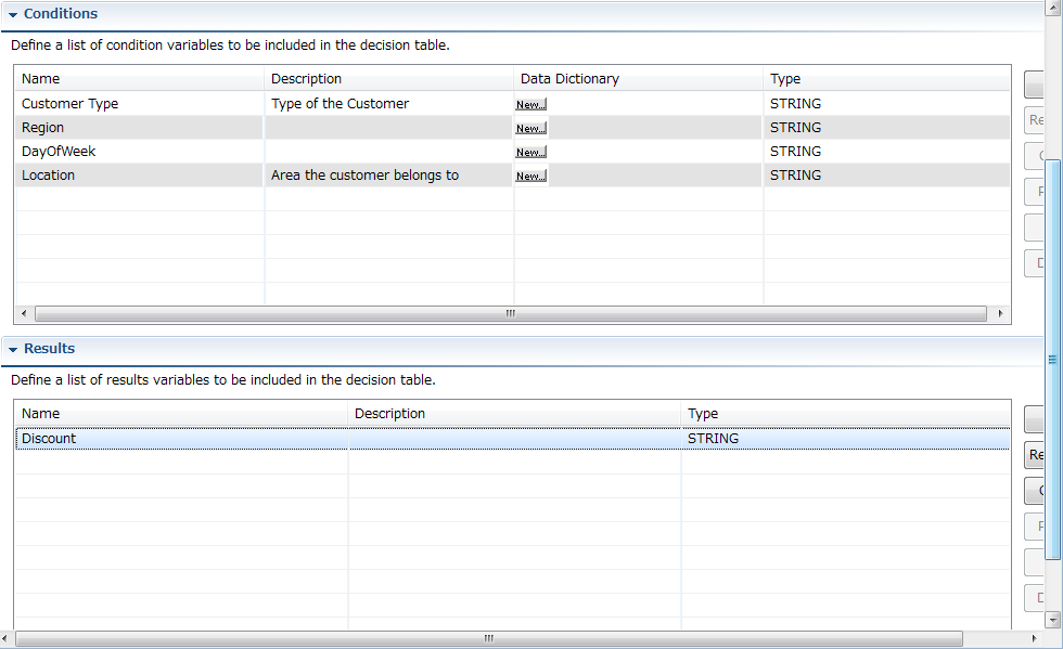 To add a new result to the Decision Table, in the Results section of the Decision Table Editor, click Add.