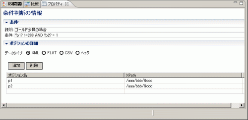XMLデータを条件の判断に用いる場合のポジション定義例は、以下のとおりです。
