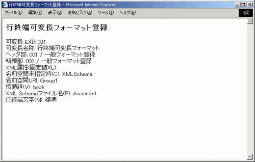 XML Schema情報を登録している場合、[行終端可変長フォーマット登録]画面(印刷)の上部に、XML Schema情報が表示されます。