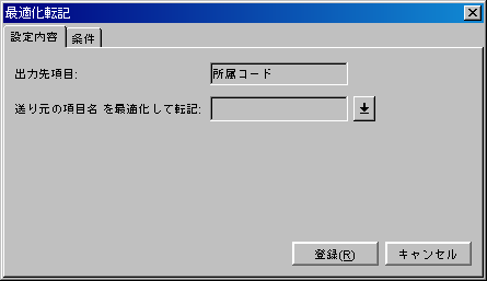 ここでは最適化転記設定の内容を登録します。