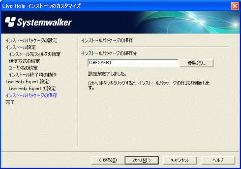 保存先を指定したら、[次へ]ボタンをクリックして下さい。カスタマイズ済みのインストールパッケージが保存されます。