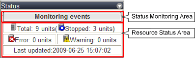 The resource status area lights up when there is at least one server in either "Error" or "Warning" status.