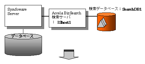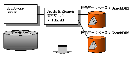 ここでは、Symfoware Server、Accela BizSearchの検索サーバおよび検索データベースの関係を説明します。